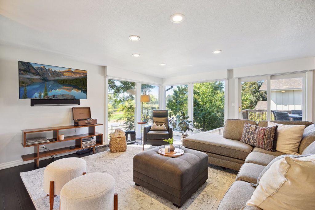 The furniture arrangement did more than fill space; it created an experience. One that welcomed buyers in, guided them through the beautifully renovated interiors, and brought their eyes right where we wanted them—out toward those breathtaking mountain views.